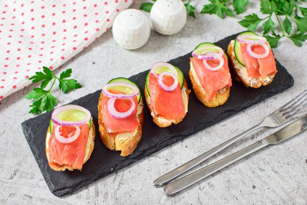 Готовые бутерброды с соленой горбушей можно сразу подавать к столу.