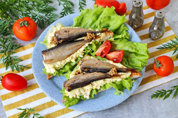 Большим деликатесом считалось достать рижские шпроты, они и сегодня отличаются особым цветом. Найти хороший продукт можно и в отечественных магазинах. Бутерброды со шпротами подают в виде холодной закуски. Можно подать их на сливочном масле, с майонезом, с авокадо. Они хорошо сочетаются с разными овощами, например, а также с яйцами, огурцами и зеленью.