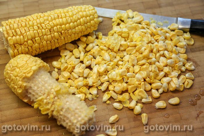 Очистить кукурузные початки, срезать или отделить руками зерна от кочерыжки.