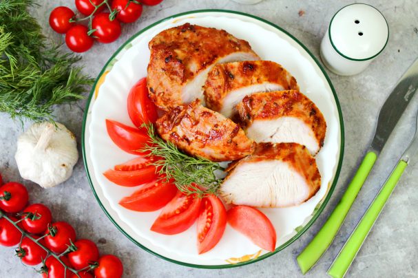 Индейка — это нежное мясо, которое быстро впитывает все ароматы и вкусы. Можно взять любое филе, но лучше всего подойдет грудка или небольшое филе. Маринование и запекание в таком соусе делает ее насыщенной с глубоким вкусом. Соус из меда и горчицы дополняется специями, а лимонный сок дает свежую нотку и легкость. Специи можно заменить по своему вкусу, отлично подойдет тимьян, базилик. Подавайте индейку с гарниром из запеченных овощей или с картофельным пюре на обед или ужин.