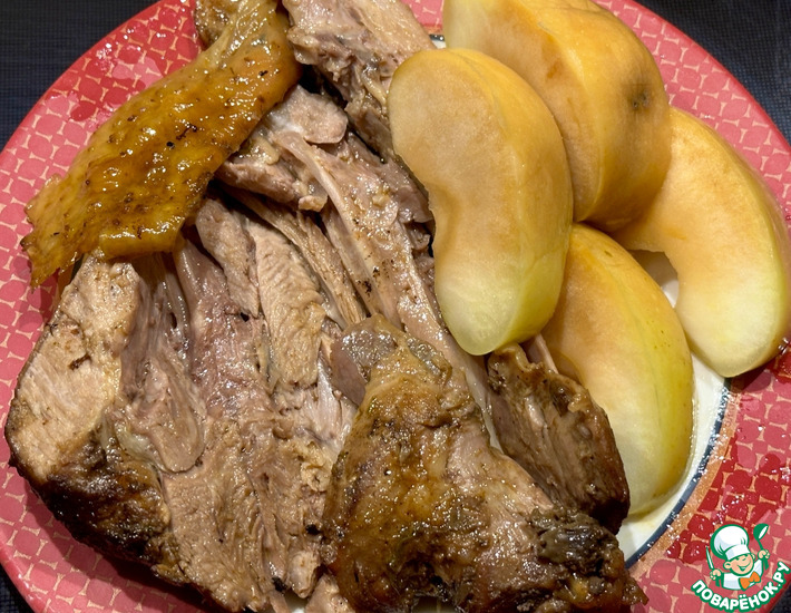 В качестве гарнира особенно хорошо пошло яблоко мочёное. Просто огонь сочетание получилось.