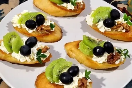 Крем сыр перекладываю в кулинарный мешок и отсаживаю на багет.