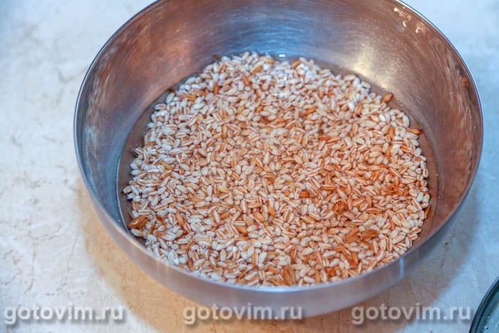 Полбу промыть под холодной проточной водой, откинуть на сито и дать воде полностью стечь.