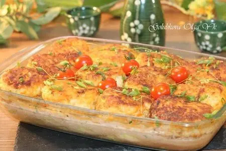 Это блюдо, в котором из фарша курицы и овощей формируют котлеты, а затем запекают на кабачковой «подушке».