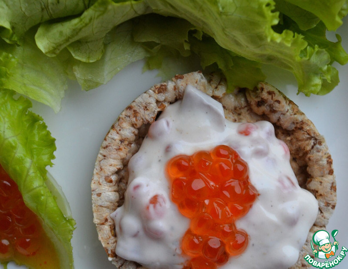 Для диетического варианта "блинов" можно использовать салатные листья с начинкой из соуса с красной икрой.
