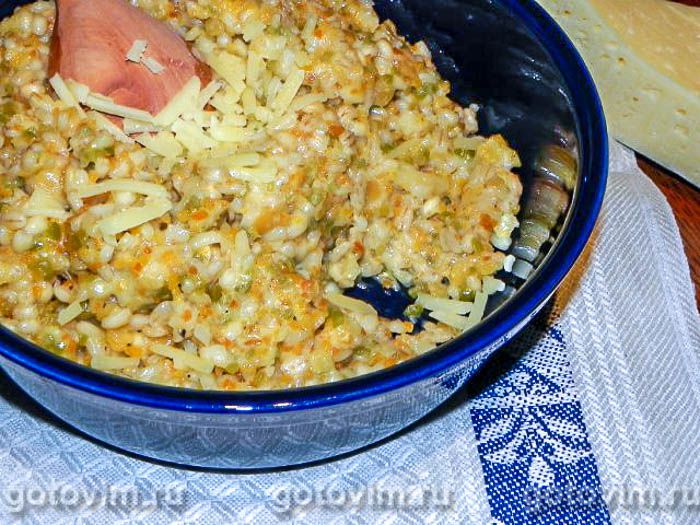 Орзотто готовят так же как и ризотто. В этом рецепте вместо риса используют смесь орзо — перловка, булгур, желтая чечевица, зеленый горошек. Готовое блюдо посыпают зрелым тертым сыром, в идеале пармезаном, и поливают сливками.