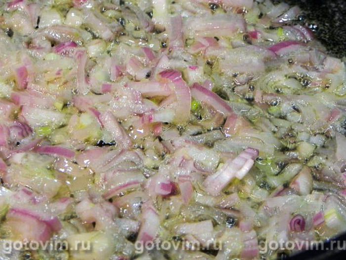 Обжарить мелко нарезанный лук в сливочном масле на небольшом огне, не давая зарумяниться.