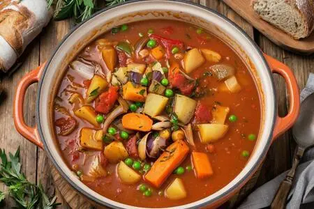 Это овощное рагу отлично подходит для зимних рационных обедов, оно получается ароматным и насыщенным