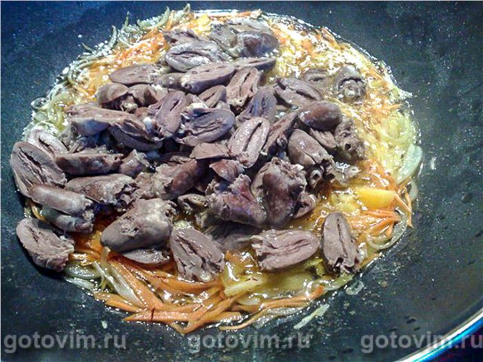 Сердца куриные сильно не обжаривала. Добавила чёрный молотый перец и сладкую паприку в порошке.