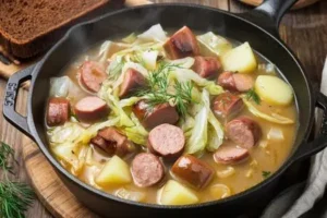 Рецепт солянки с сосисками и капустой на сковороде: подготовка с луком, морковью, картофелем, специями и свежей зеленью для насыщенного вкуса. Ингредиенты сосиски – 3 шт. капуста белокочанная – 200 г лук репчатый – 1 головка морковь – 1 шт. картофель – 2–3 клубня масло растительное – 2 ст.л. вода или бульон – около ст. специи …