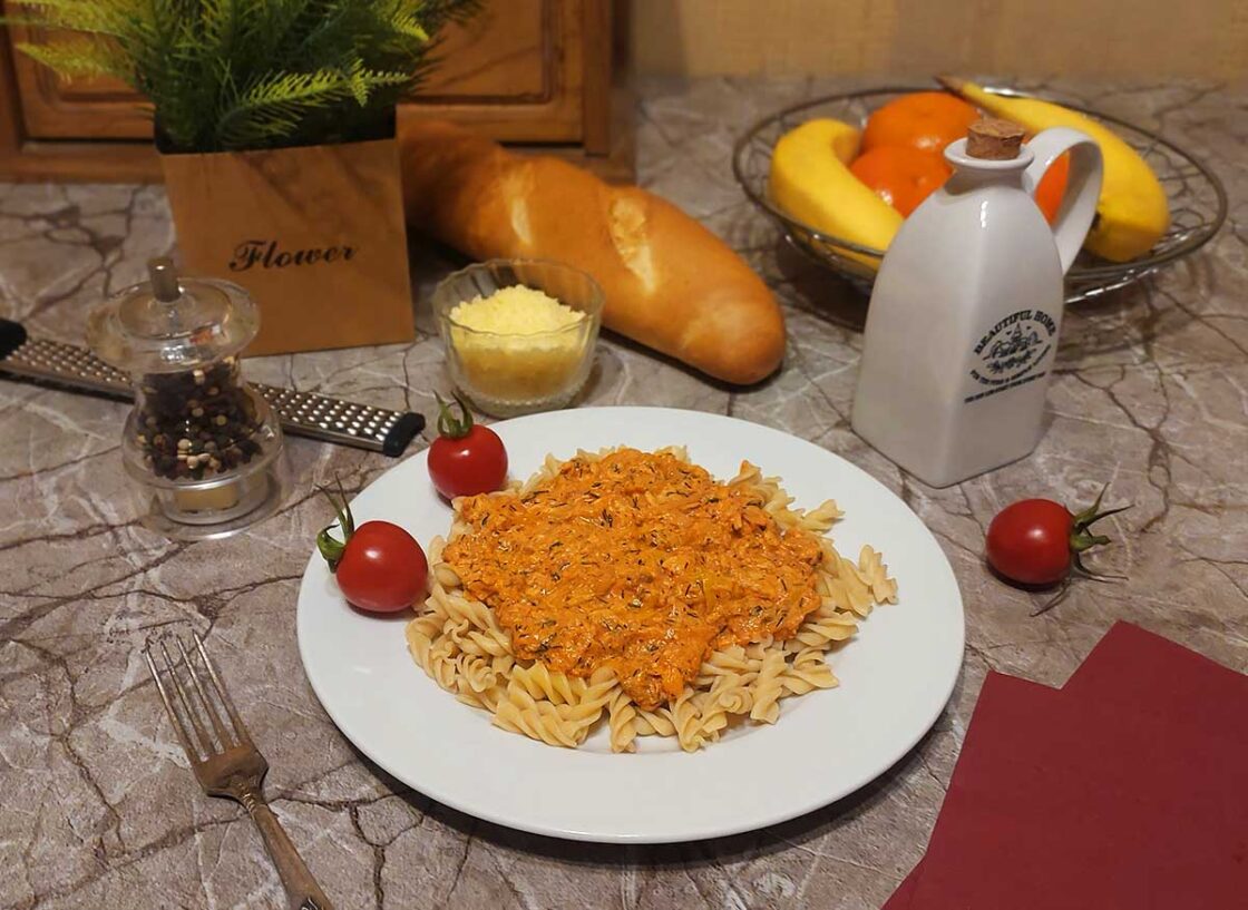 Как приготовить пасту с консервированным лососем — простой рецепт макарон с рыбой в томатно-сливочном соусе с пошаговыми фото