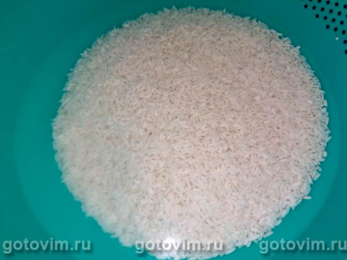 Первым делом нужно тщательно промыть рис. Это очень важно. От этого зависит, насколько рассыпчатым будет готовый плов. Рис промывают в холодной воде как минимум 3 раза. Вода должна быть после риса прозрачной. Затем заливают холодной водой и оставляют на 1.5-2 часа.