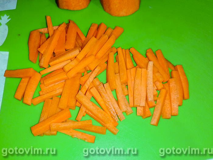 Морковь нарезаем соломкой.