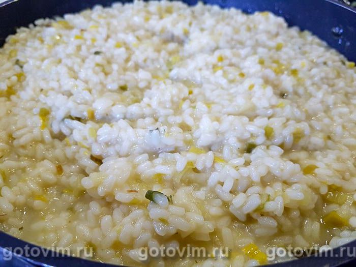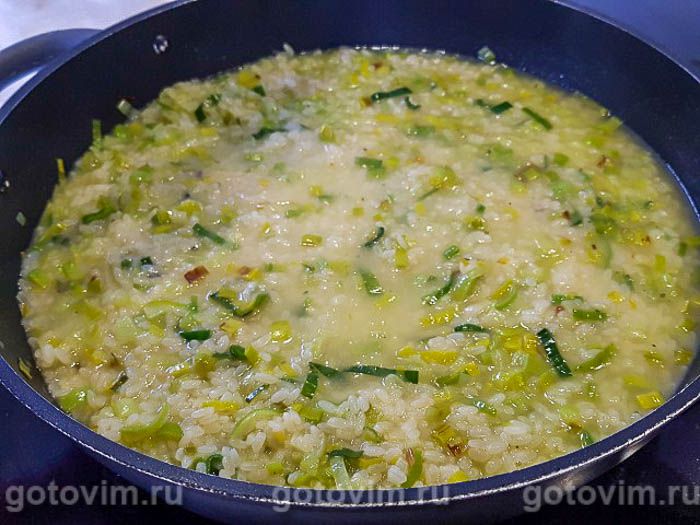 Ризотто с луком пореем Ризотто готовить совсем не сложно, если выбрать нужный сорт риса и соблюдать правила. Для этого блюда выбирают рис сорта арборио. Именно из него получается ризотто кремообразной консистенции. Лук-порей (белую и частично зеленую часть стебля) нарезают довольно мелко, чтобы он практически растворился в готовом ризотто.