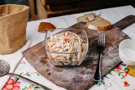 Дайте салату настояться в холодильнике около 15–20 минут перед подачей, чтобы вкус стал ярче.