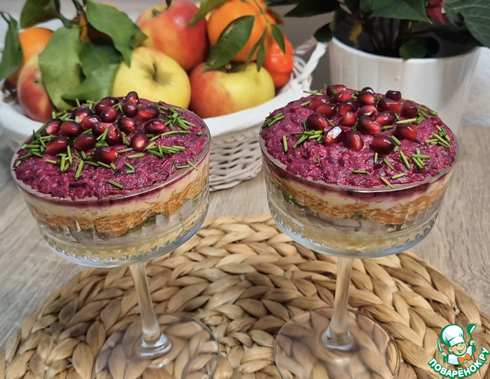 Рецепт «Сельдь под шубой с запечёными овощами»: