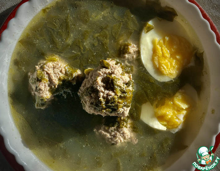 Рецепт «Суп из щавеля с фрикадельками из индюшки»: